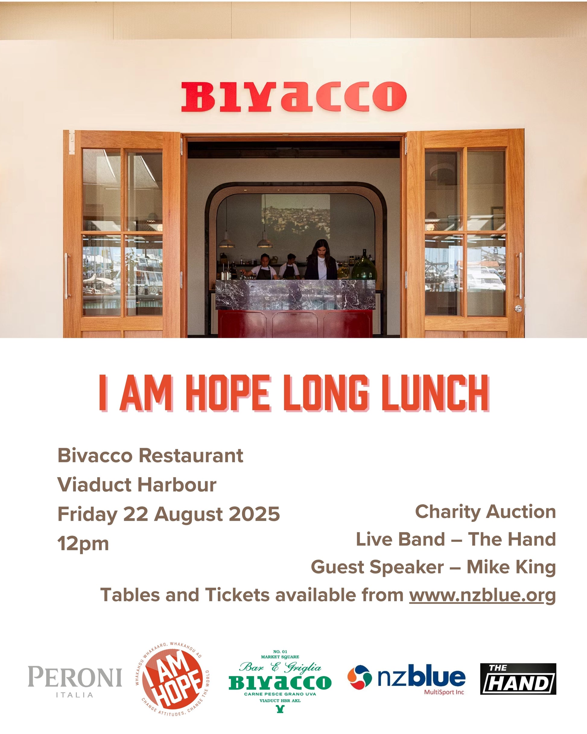 NZBLUE Multisport (Inc) is excited to bring back this 80s-style Long Lunch to raise much-needed funds for the I am Hope Foundation.